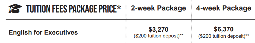- High-end executive English programmes range from US$6,370 to US$29,762 per month. These are offered by els.edu and languageinternational.com